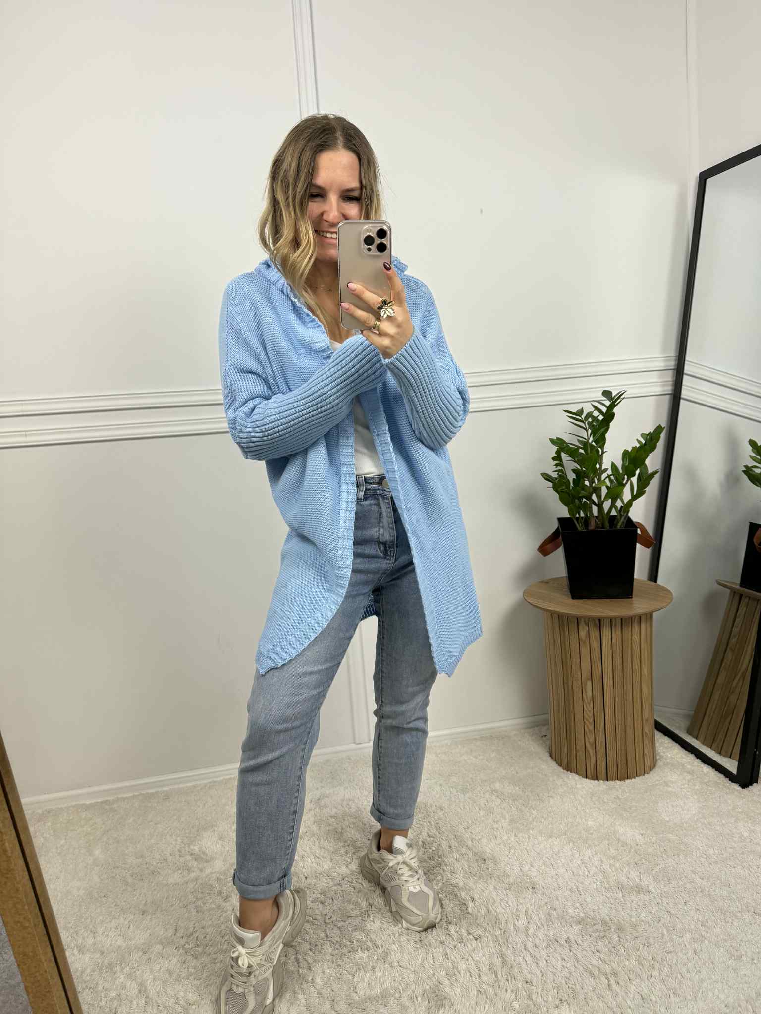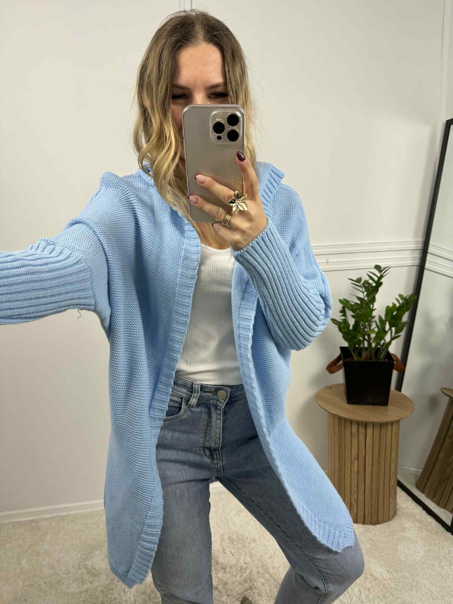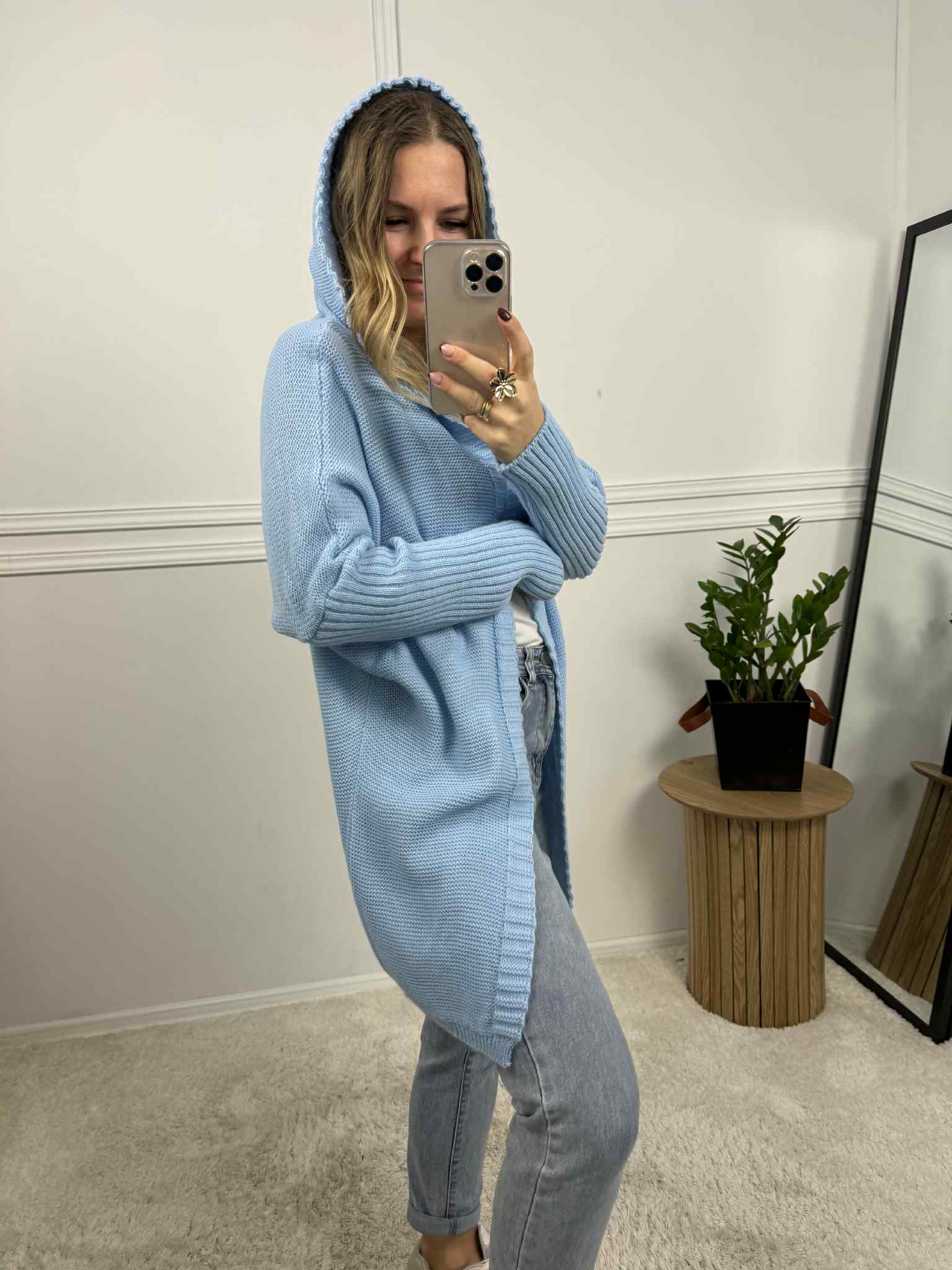 Kardigan o średniej długości z kapturem to idealny wybór na wiosnę. Obniżona linia ramion sprawia, że pomieści nawet spory biust. Niezapinany fason zapewnia swobodę i lekkość, a kaptur dodaje casualowego charakteru. Doskonały do codziennych stylizacji, wygodny i stylowy.