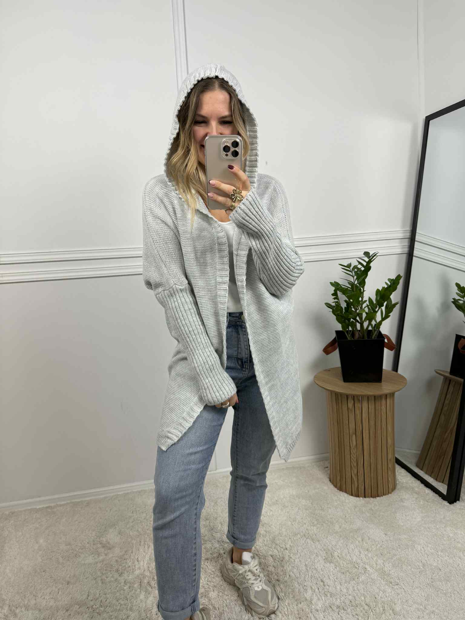 Kardigan o średniej długości z kapturem to idealny wybór na wiosnę. Obniżona linia ramion sprawia, że pomieści nawet spory biust. Niezapinany fason zapewnia swobodę i lekkość, a kaptur dodaje casualowego charakteru. Doskonały do codziennych stylizacji,…