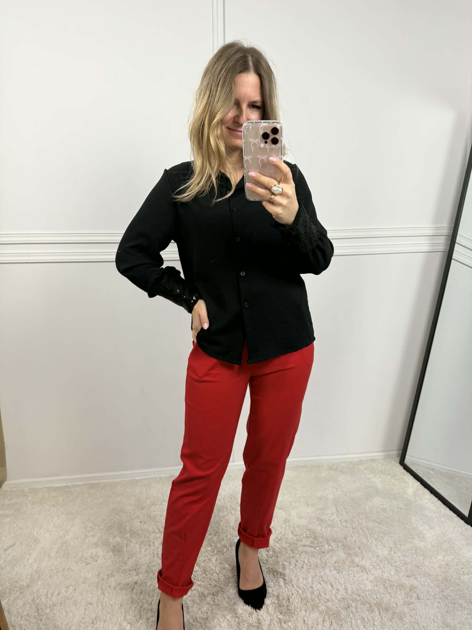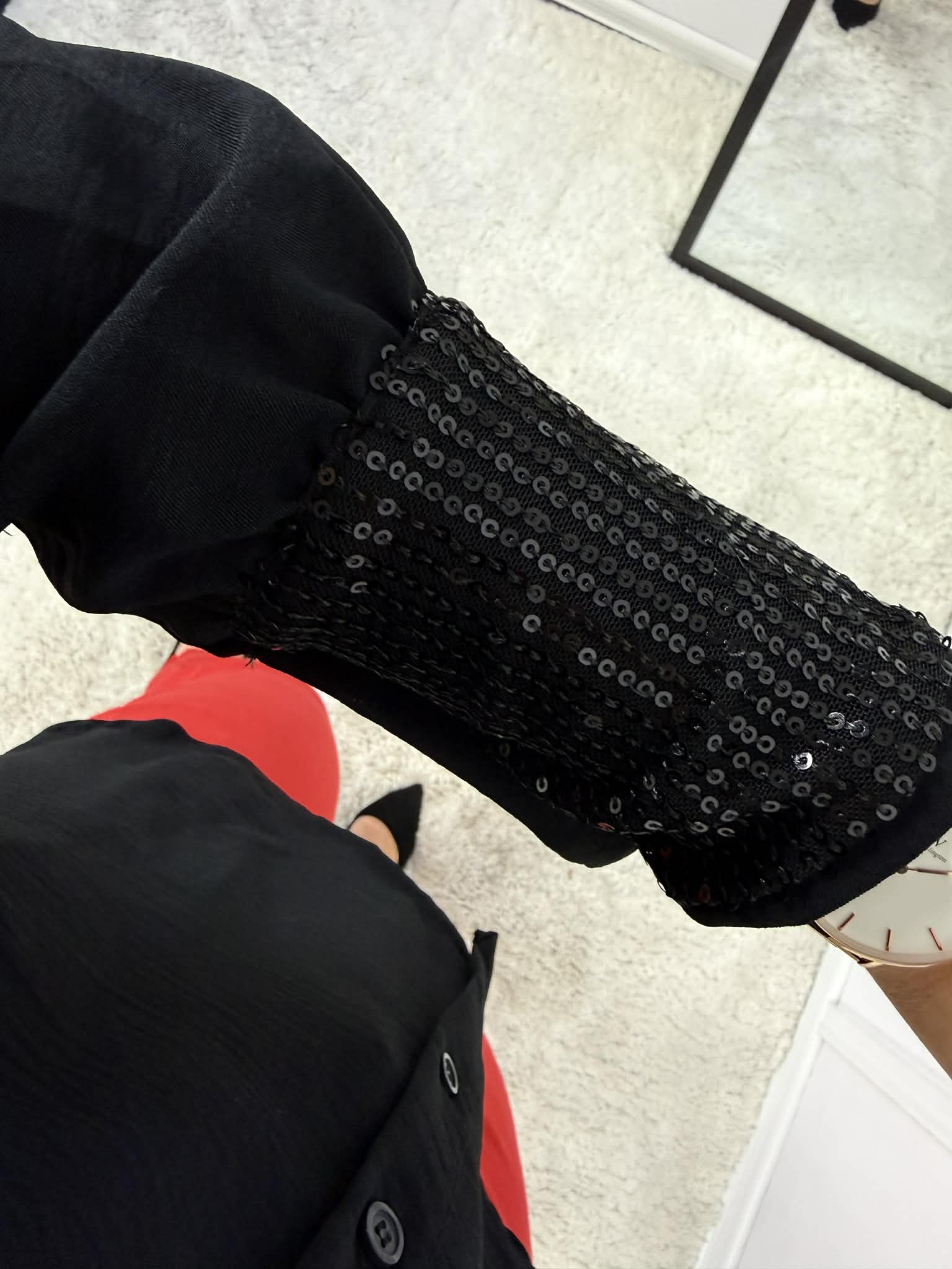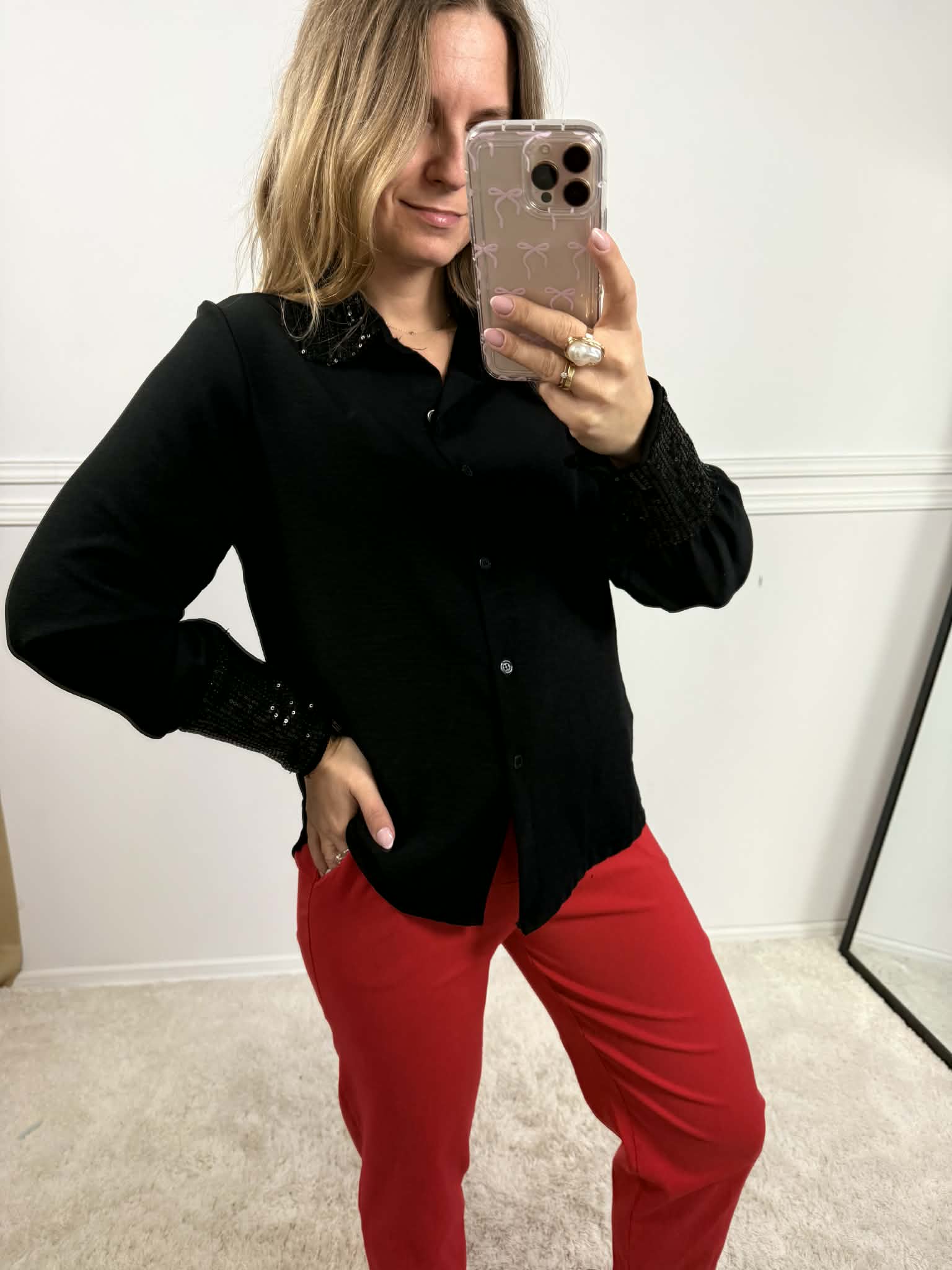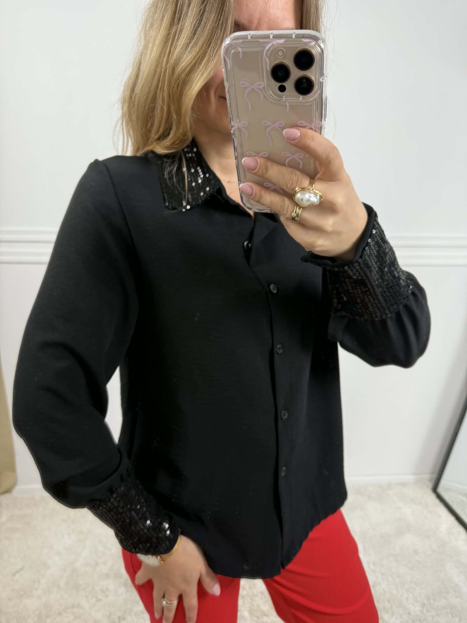 Strona główna » Koszule i Bluzki » Koszula z cekinowym kołnierzem czarna