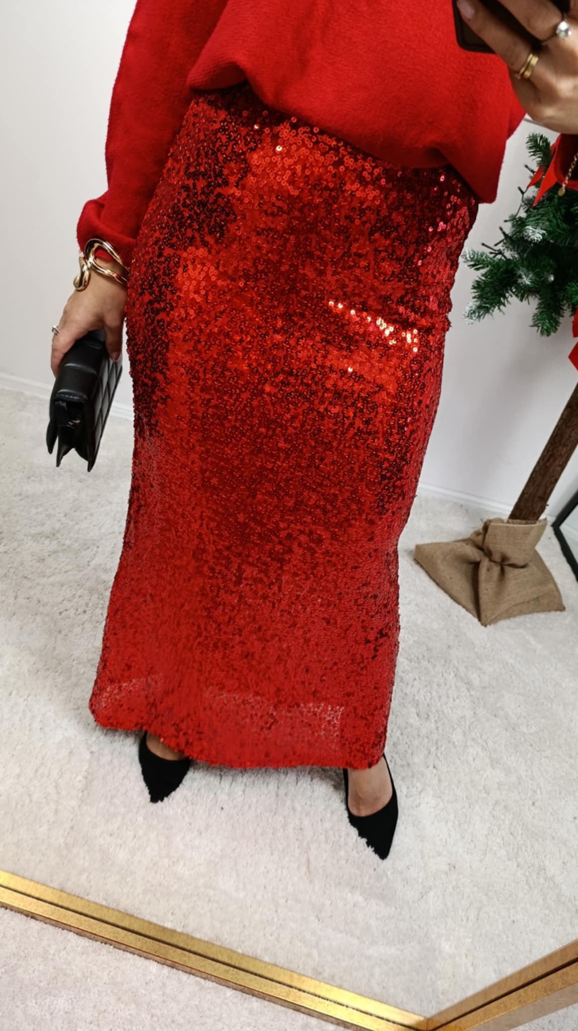 Spódnica o długości maxi na gumce o cekinowym wykończeniu. Na żywo prezentuje się fenomenalnie. Sprawdzi się idealnie na różnego rodzaju święta, imprezy czy domówkę.