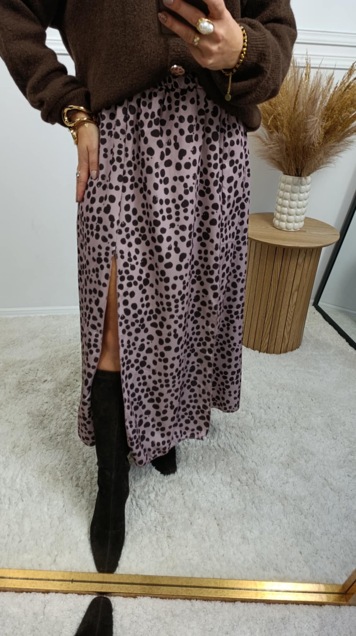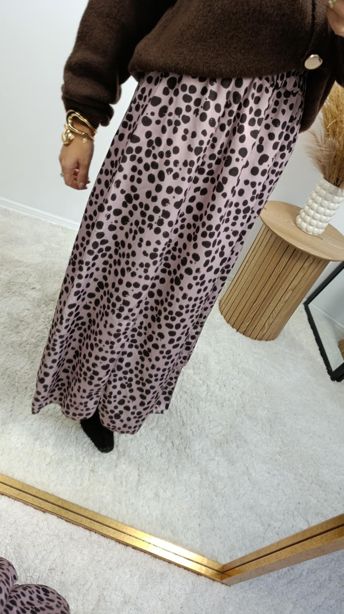 Strona główna » Spódnice » Spódnica midi Eliza puder róż w brązowe groszki