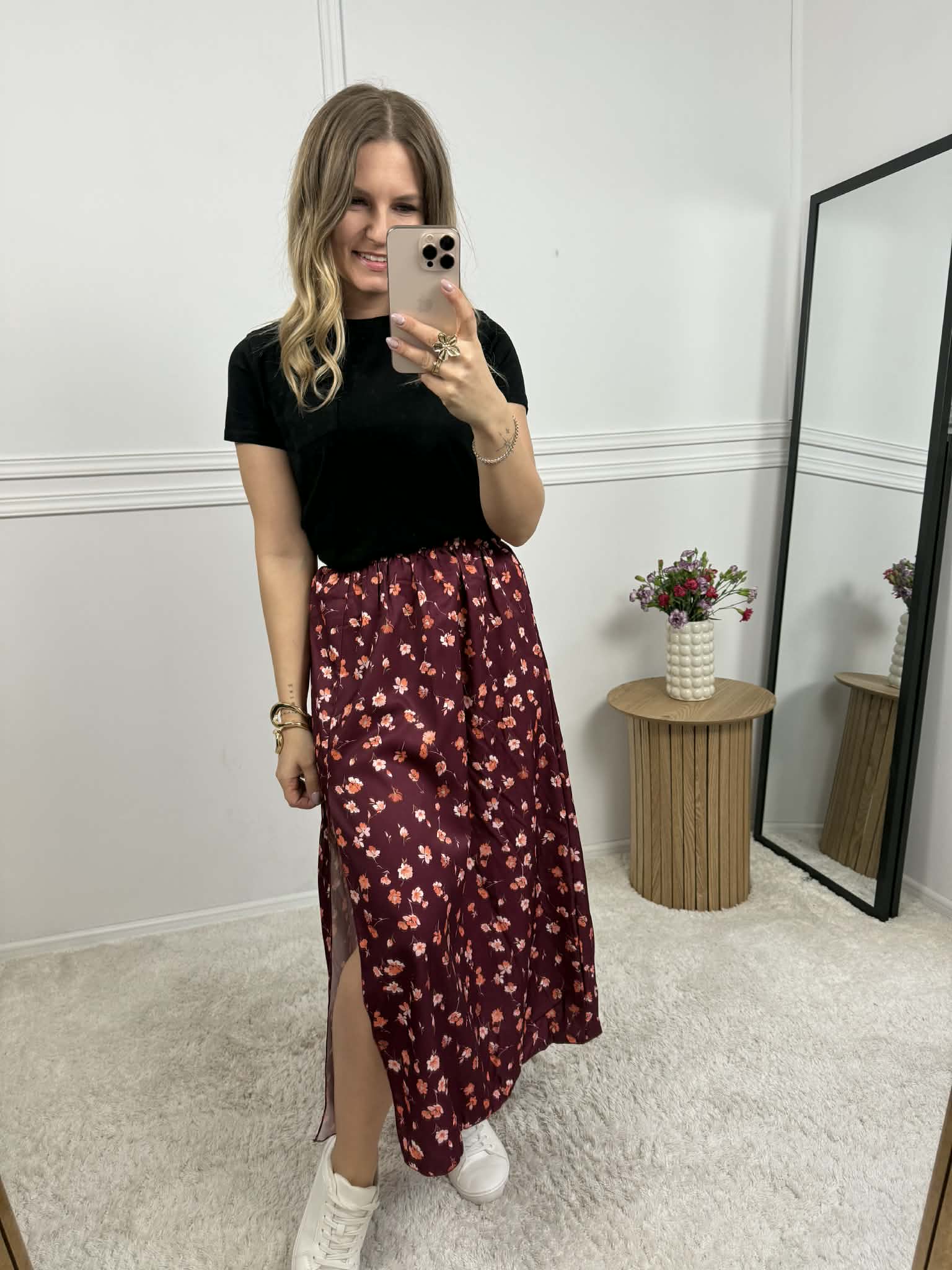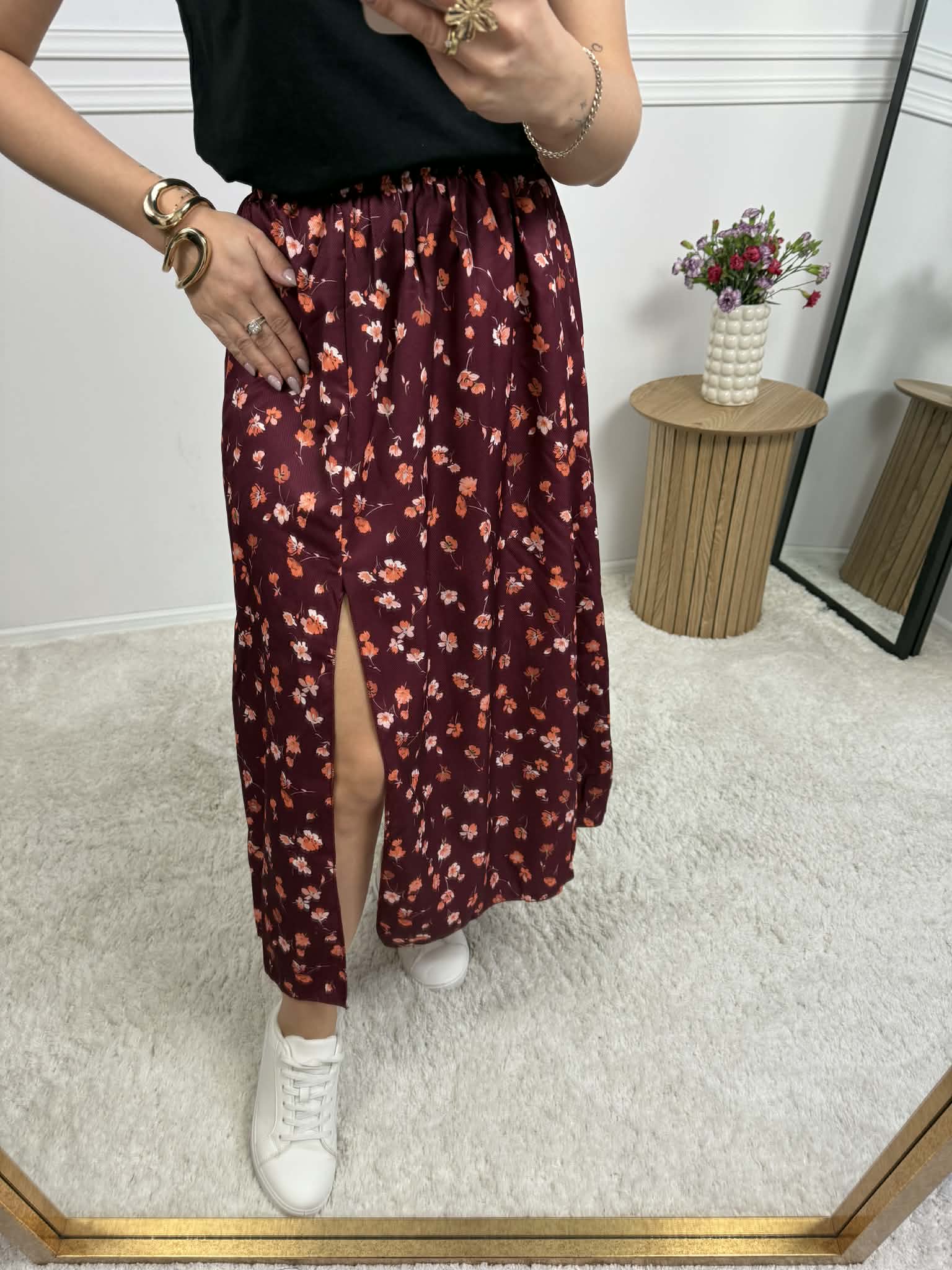 Strona główna » Spódnice » Spódnica midi na gumce bordowo pomarańczowa