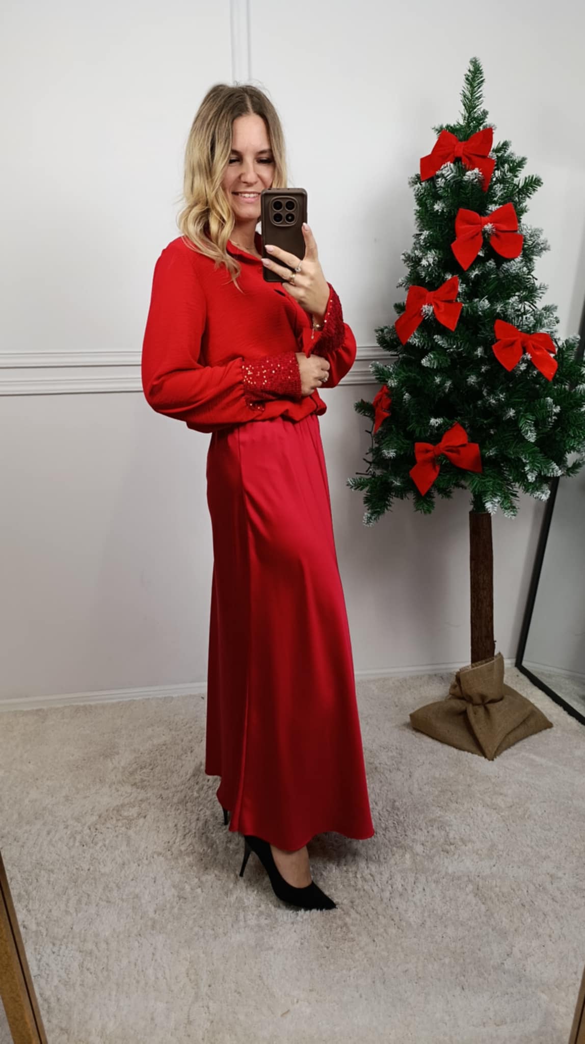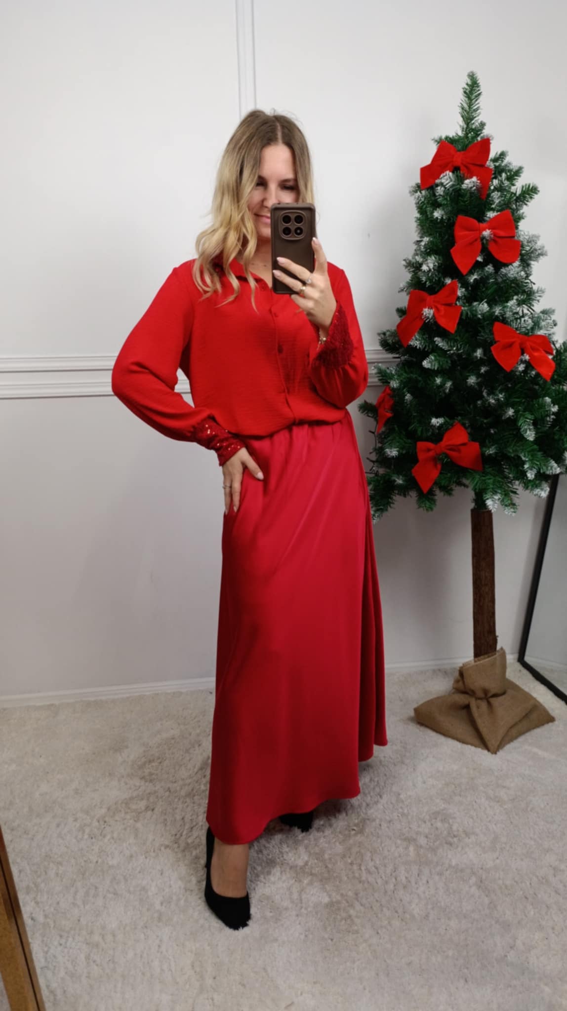 Spódnica satynowa o długości maxi Sati czerwonaSpódnica satynowa o długości maxi Sati czerwonaSpódnica satynowa o długości maxi Sati czerwona