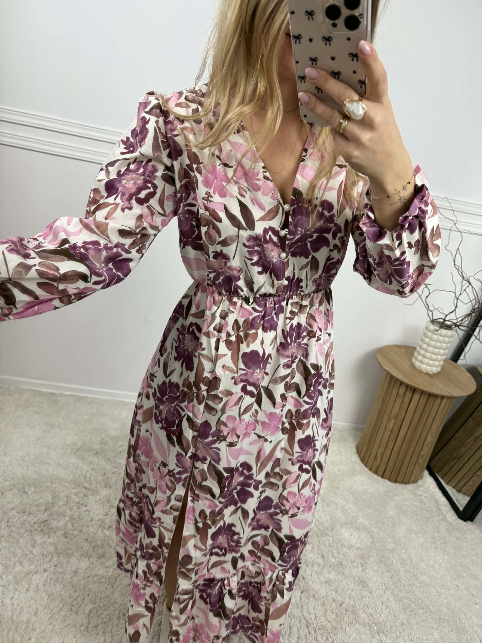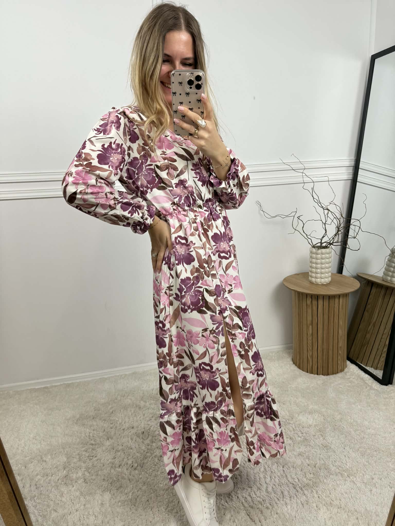Sukienka midi w kwiatowy print to kobieca propozycja na każdą okazję. Dekolt V pięknie podkreśla szyję i wysmukla sylwetkę, a rozcięcie z przodu dodaje lekkości i subtelnej zmysłowości. Idealna zarówno na przyjęcia, randki, jak i letnie wyjścia – wystarczy dobrać ulubione dodatki, by stworzyć wyjątkową stylizację.