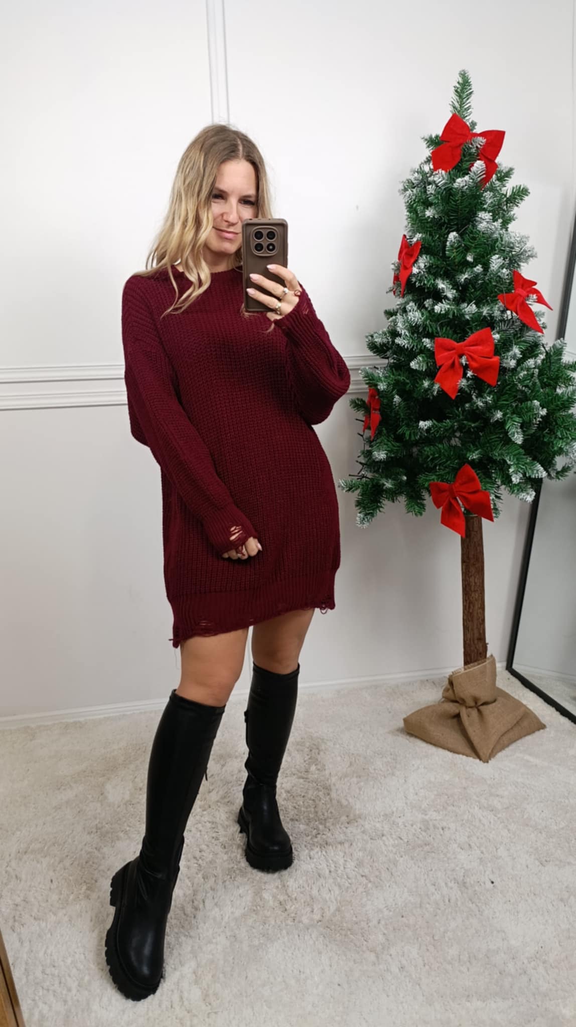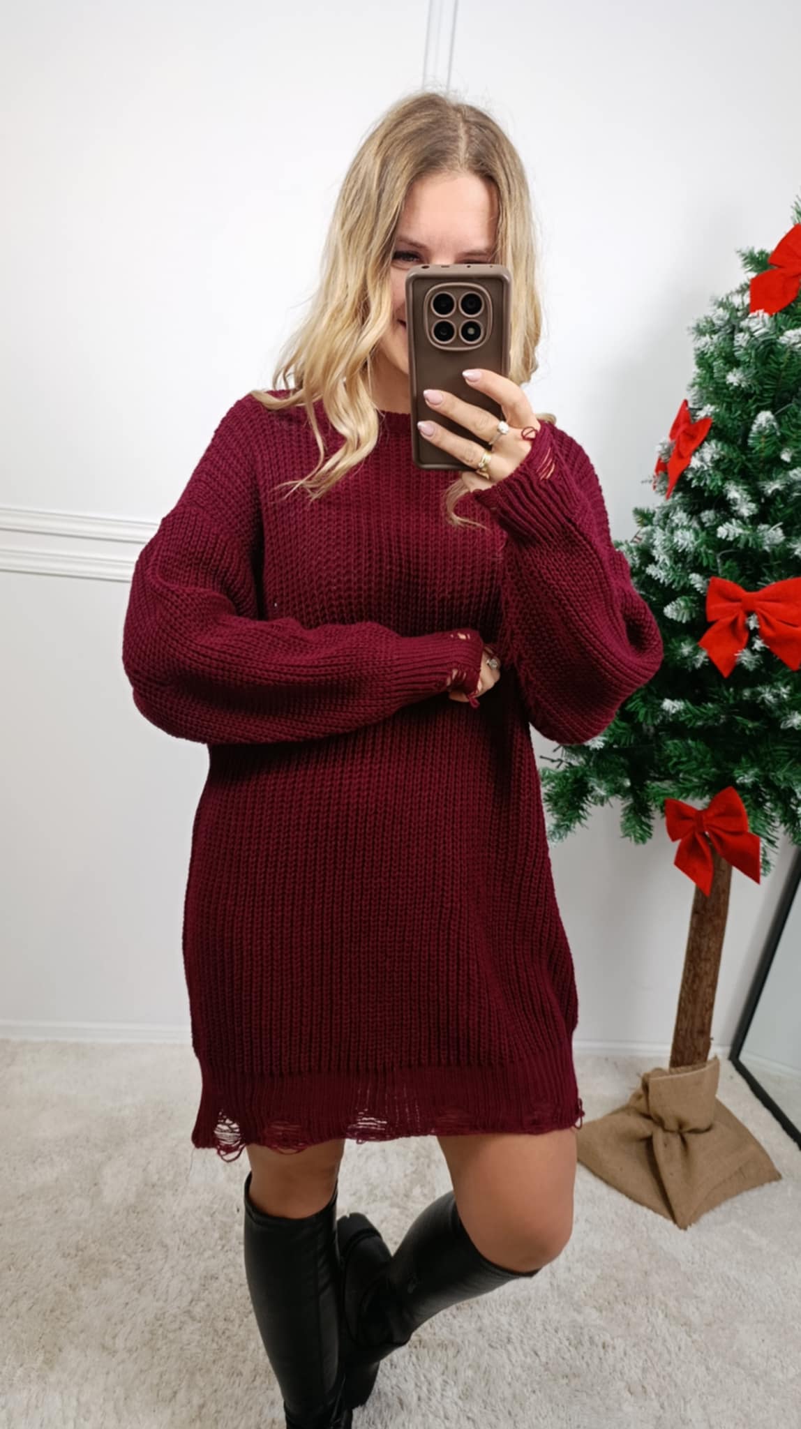 Strona główna » Sukienki » Sukienka sweterkowa z dziurami bordo