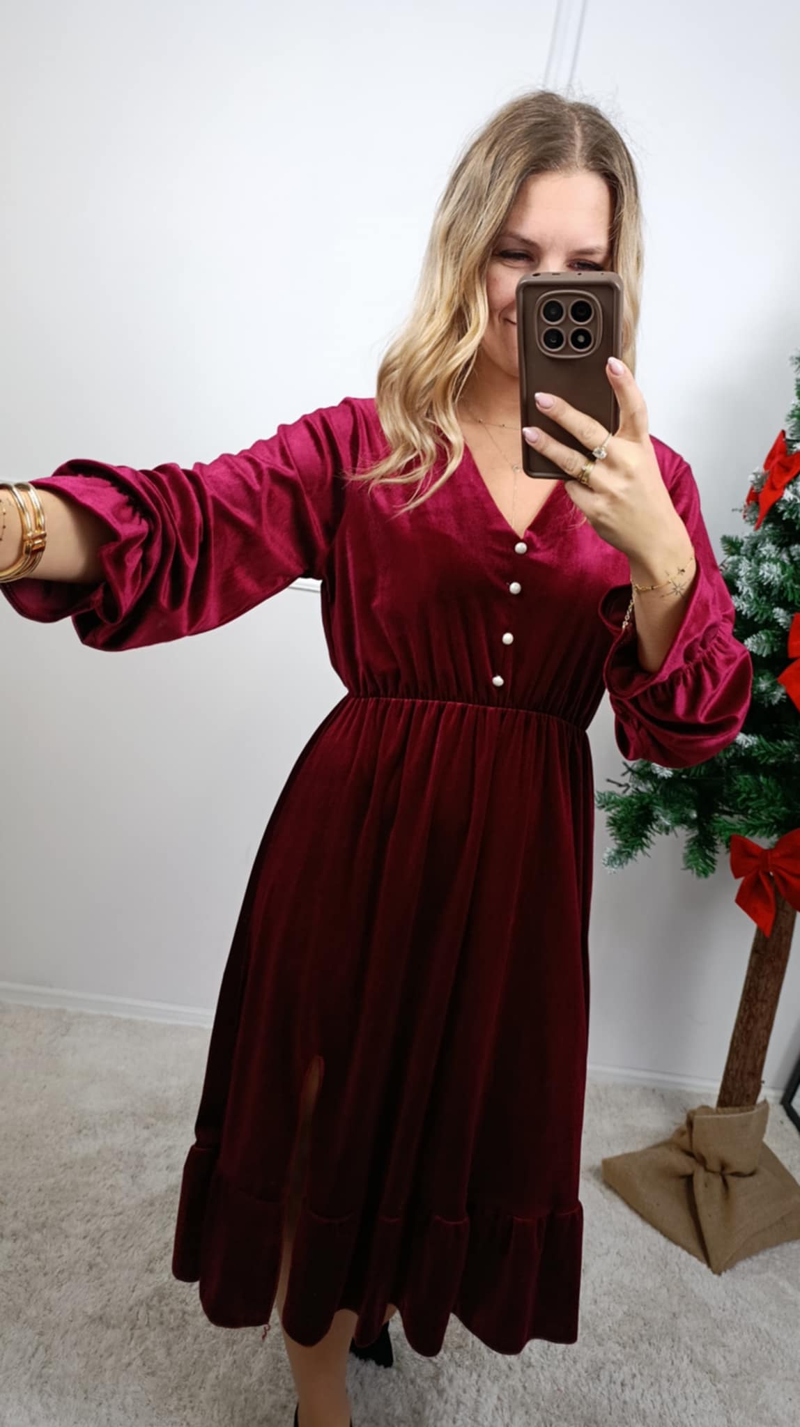 Sukienka welurowa Diuna bordowaSukienka welurowa Diuna bordowaSukienka welurowa Diuna bordowaSukienka welurowa Diuna bordowa
