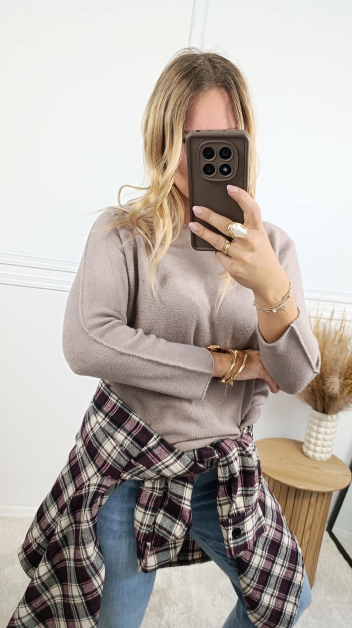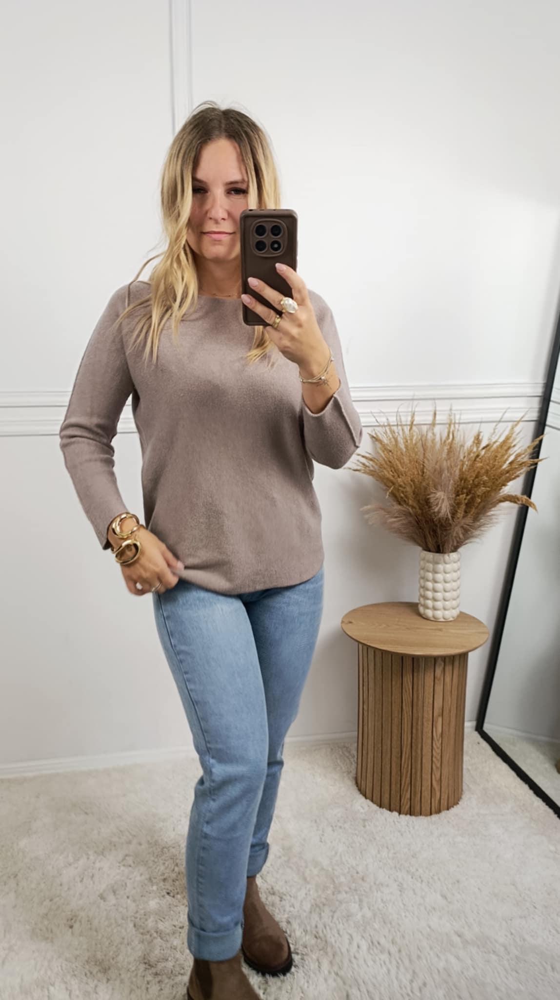 Sweter o dopasowanym kroju z długim rękawem. Miły w dotyku, nie gryzie. Sweter posiada dekolt w łódkę, a na rękawach ozdobne przeszycia.