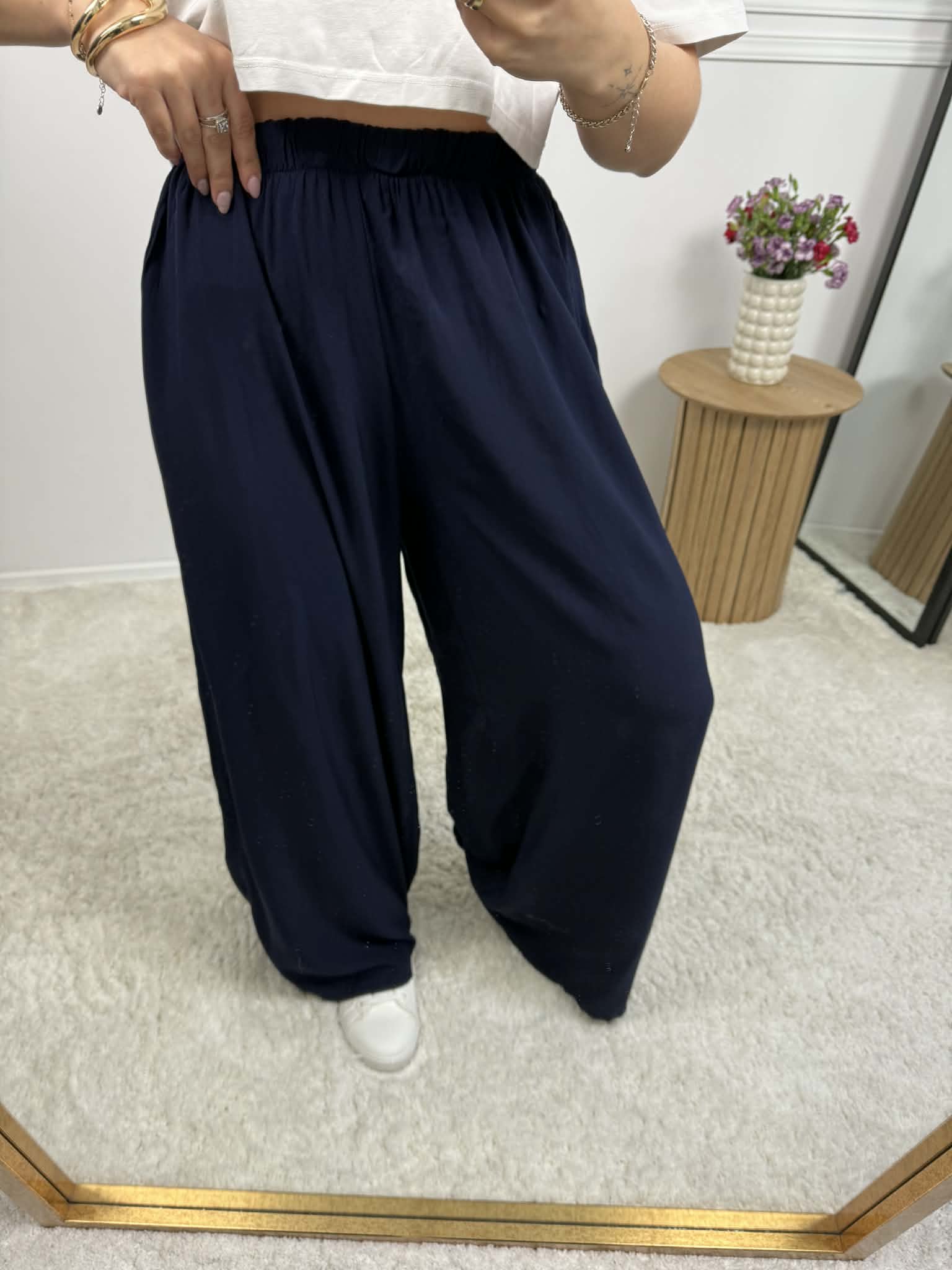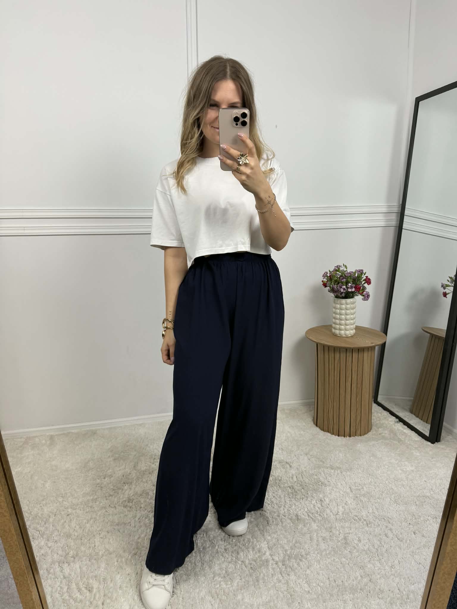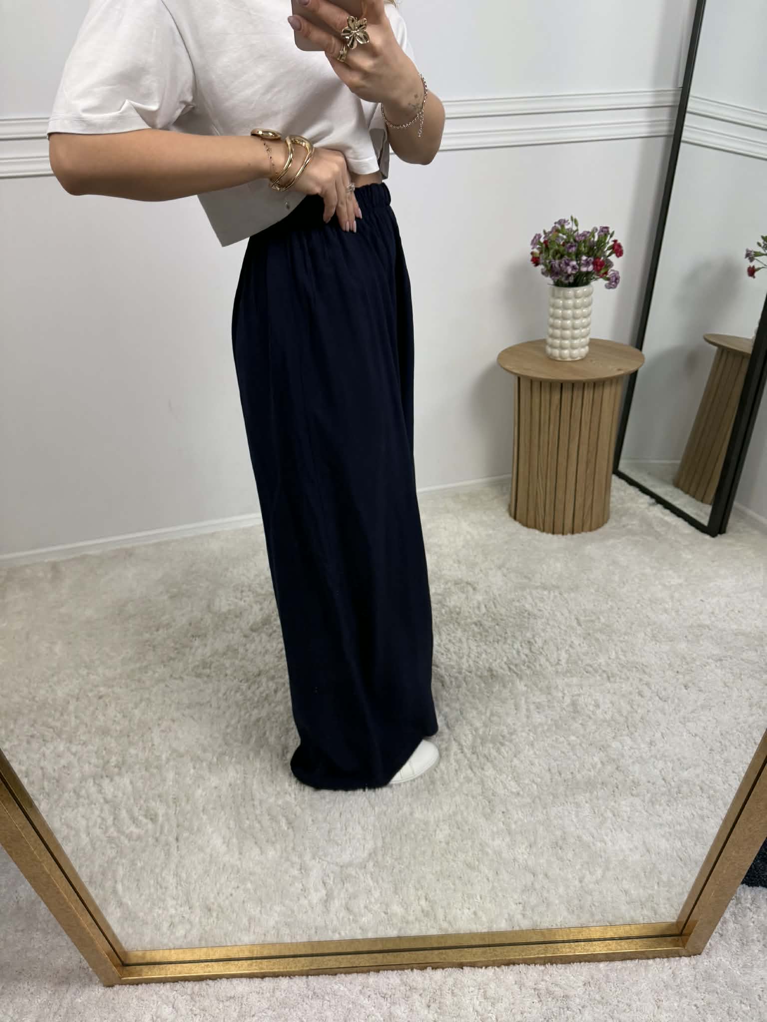 Strona główna » Spodnie » Wiskozowe spodnie na gumce o szerokim kroju Kioto granatowe